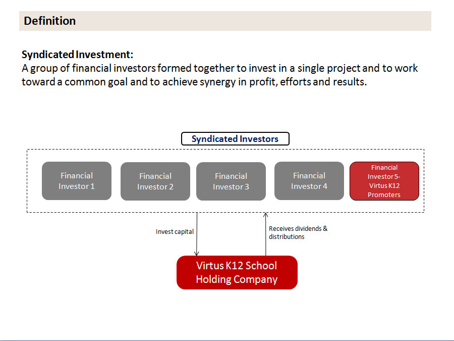 Group of financial investors to invest together in a single project and work towards a common goal achieving synergy in profit, efforts and results.