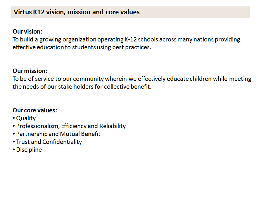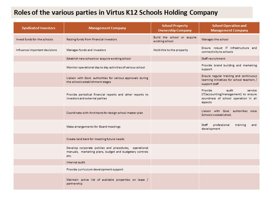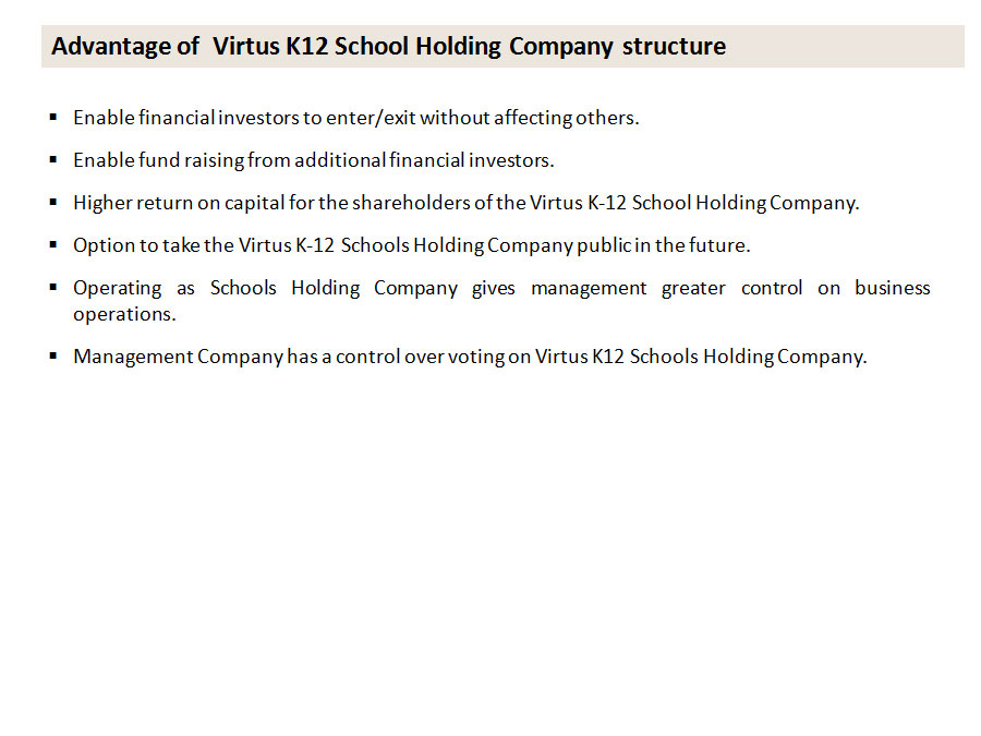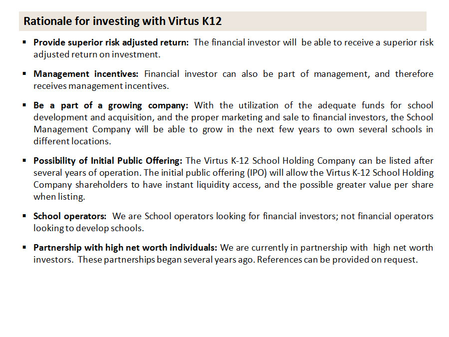 Details on Investment Highlights for a typical school project*: